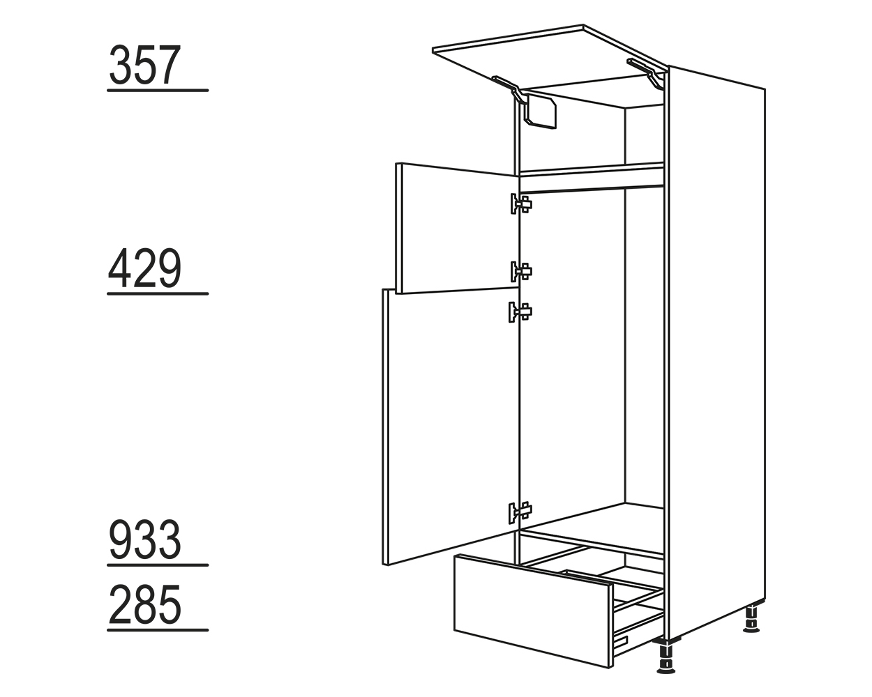 Armario para combinado frigorífico y congelador integrado Altura del hueco: 1230 mm 1 puerta abatible, 1 panel interior, 1 puerta de aparato para congelador, 1 puerta de aparato para frigorífico, 1 gaveta
