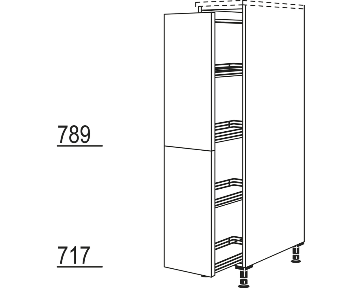 Semicolumna de farmacia 1 gaveta con amortiguador de entrada y extracción SoftStoppPro, 4 cestas colgantes con base de madera y barandilla de metal, regulables