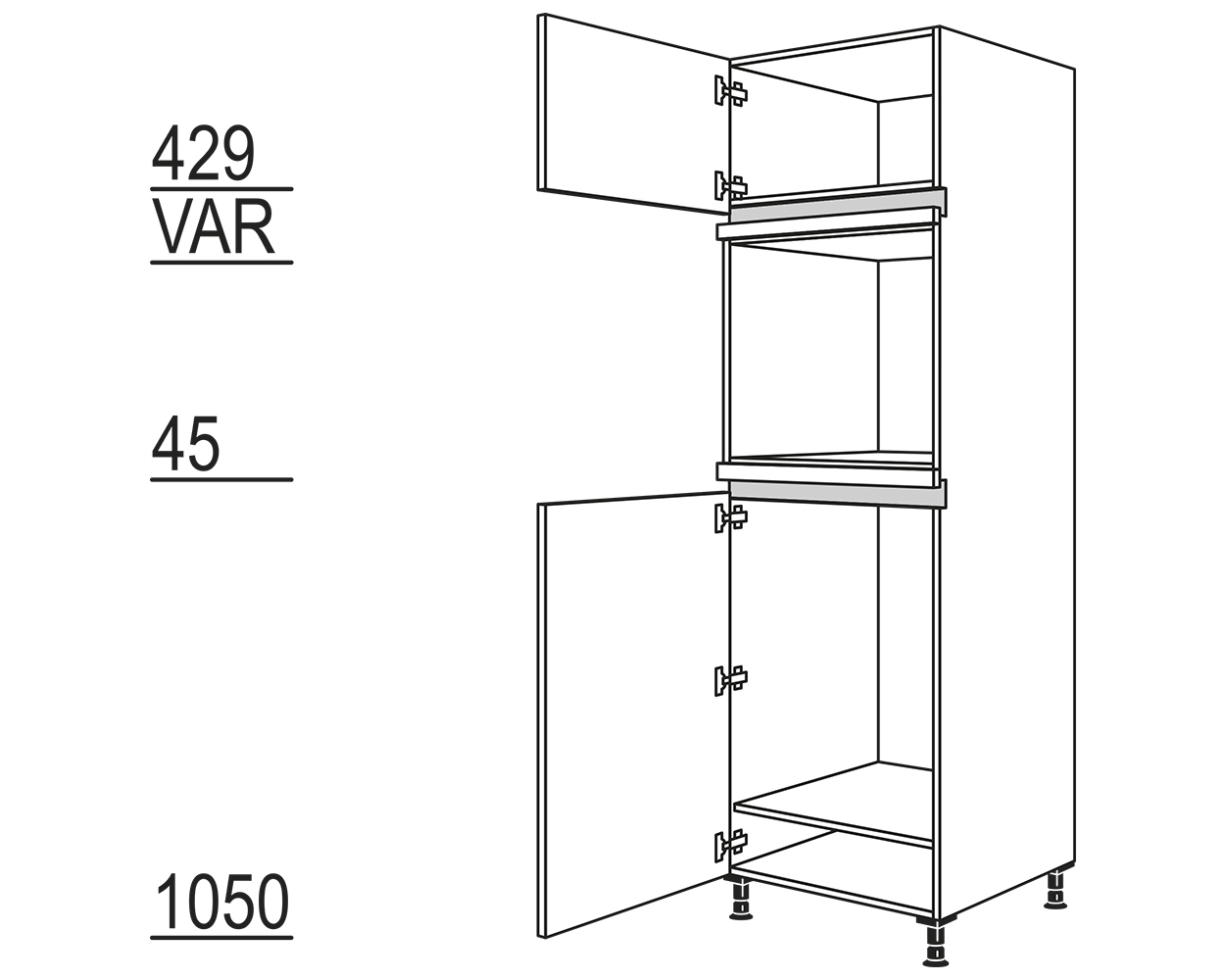 Armario XL para frigorífico y horno integrado Altura del hueco: 590 mm Altura del hueco: 880 mm 1 puerta, 2 paneles de ajuste fijos, 1 puerta de aparato