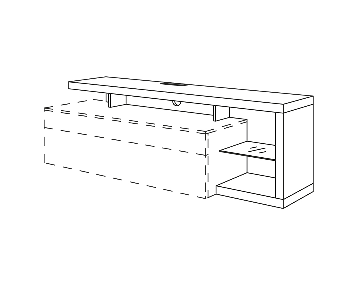 Consola multimedia para planificaciones con armarios bajos en una altura de cuerpo de 432 mm + zócalo de 20 mm MP-SOWR y estante de cubierta de 16 mm ADB16* Anchura total: 1600/2000 mm, profundidad: 371 mm, altura: 662 mm, lado de 500 mm de anchura, 1 estante de cristal de 6 mm de grosor, anchura: 443 mm, profundidad: 308 mm, 1 paso de cable, rectangular, en el estante superior, 1 paso de cable, redondo, en la pared trasera, Se suministra en: en todos los colores de cuerpo, paso de cable en 010 Negro o 014 Óptica de acero inoxidable